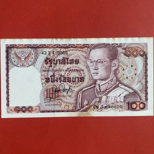 ธนบัตรแบบ12 100 บาท รุ่นที่ 2 ต่างจากรุ่นที่ 1 คือมี 7 หลัก ลายเซ็น สุธี สิงห์เสน่ห์ - วิจิตร สุพินิจ พิมพ์โรงพิมพ์ธนบัตรของไทย