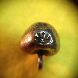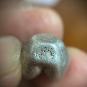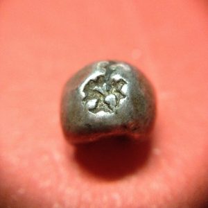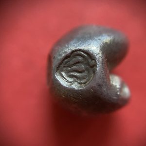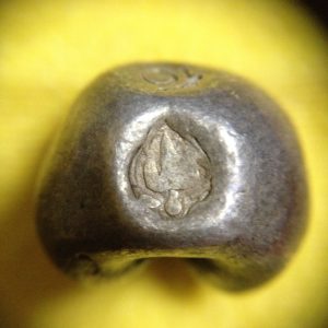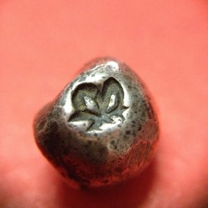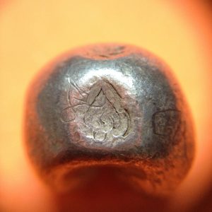 พดด้วงเม็ด 1 บาทสมัยพระเจ้าปราสาททองปี พ.ศ. 2173-2198 ตรา พุ่มข้าวบิณฑ์จอมปราสาท เป็นรูป 7 จุดอยู่ภายในกรอบ สวยคมชัดมากๆ (เม็ดที่ 2)