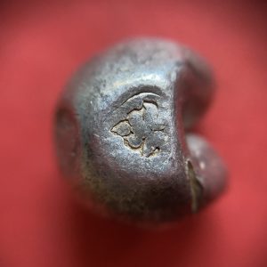 พดด้วงเม็ด 1 บาทสมัยพระเจ้าทรงธรรมปี พ.ศ. 2155-2171 ตรา เปลวเพลิง เป็นรูปคล้ายดวงไฟมีเปลวลอยสองข้าง สวยคมชัดเป็นแบบหายาก (เม็ดที่10)