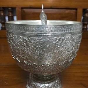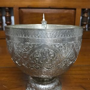 พานทองเหลืองเก่า ลายกลีบมะเฟือง ขนาดเส้นผ่าศูนย์กลาง 24 ซม. สูง 14 ซม.