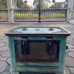 หีบกำปั่นเหล็กโบราณจากประเทศจีน สวยงามสมบูรณ์มากๆ ที่ฝามีลายกนก 4 มุม หนักมาก
