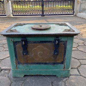 หีบกำปั่นเหล็กโบราณจากประเทศจีน สวยงามสมบูรณ์ ที่ฝามีลายกนก 4 มุม หนักมาก