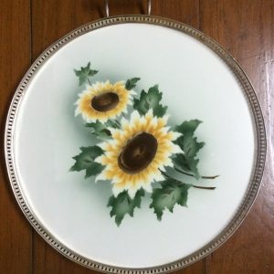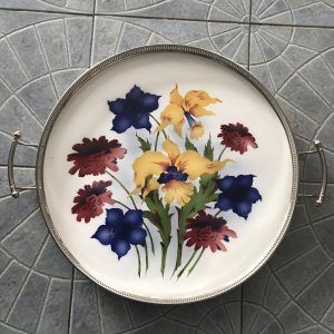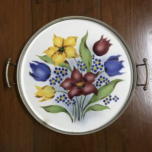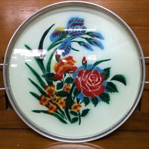ถาดกระเบื้องโบราณ ขนาด 18 นิ้ว ลายดอกกุหลาบบานแดง 1 เหลือง 1 นอกนั้นดอกอื่นๆ เหลือง 7 ดอก