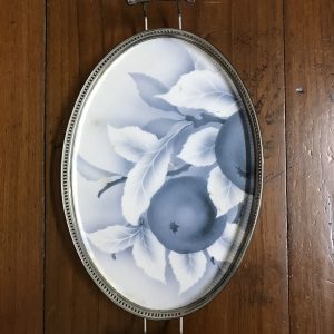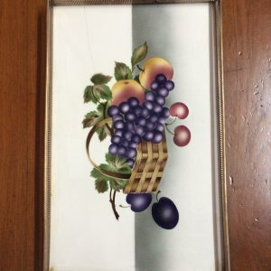 ถาดกระเบื้องโบราณรูปสี่เหลี่ยมกว้าง 9 1/2"X15" ลายผลไม้องุ่น เชอรี่ ส้มและอื่นๆหลากหลายอยู่ในตระกร้า
