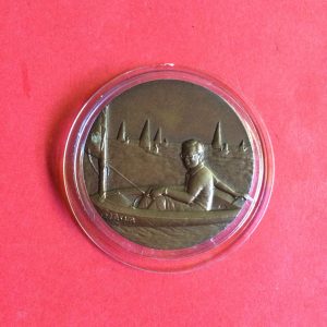 หน้าเหรียญเป็นรูปพระองค์ท่านประทับเรือใบ ซุปเปอร์มด ที่กรุงเทพมหานคร