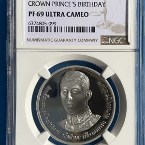 เหรียญสมเด็จพระบรมโอรสาธิราช เจ้าฟ้ามหาวชิราลงกรณ สยามกุฎราชกุมารเนื้อเงินขัดเงา เฉลิมพระชนมายุ 36 พรรษา 28 กรกฎาคม 31