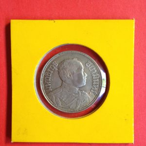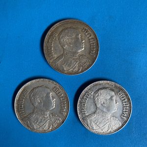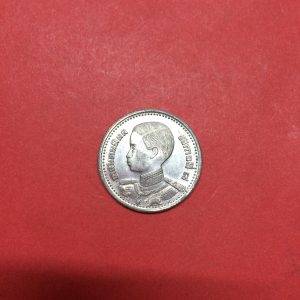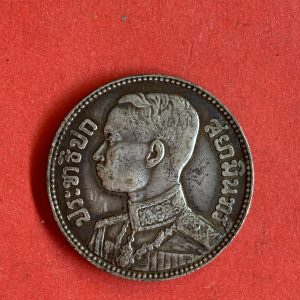 เหรียญช้างสามเศียรหนึ่งสลึง ร.6 เนื้อเงิน ปี 2467 หูตาคมชัดทั้งหัวและก้อยกะไหล่เงินเดิม