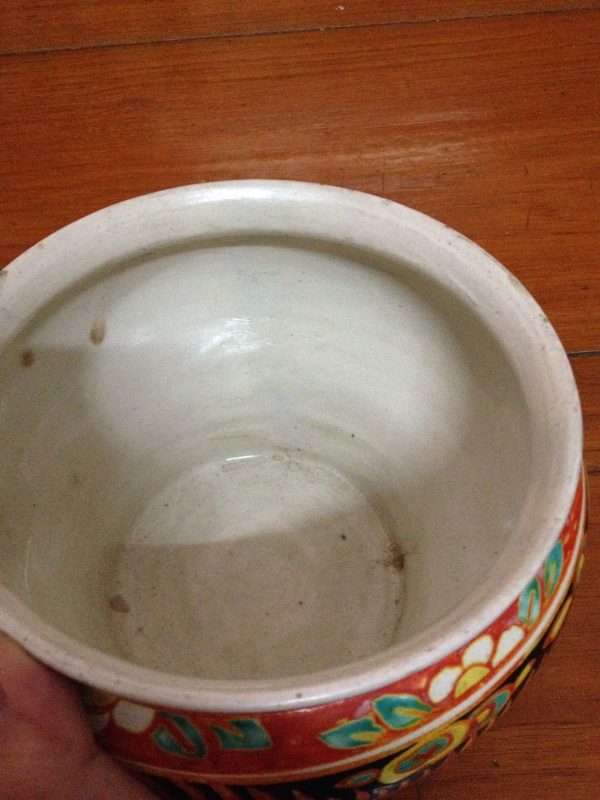 กระโถนกังใสไข่ปอกสมัยรัตนโกสินทร์ตอนต้นเก่ามาก ลายมังกรสองตัวเล่นไฟ