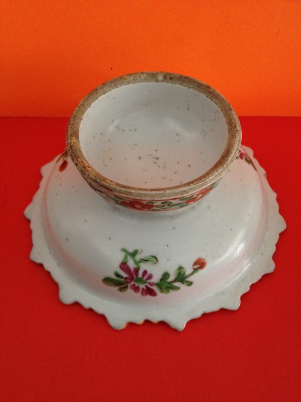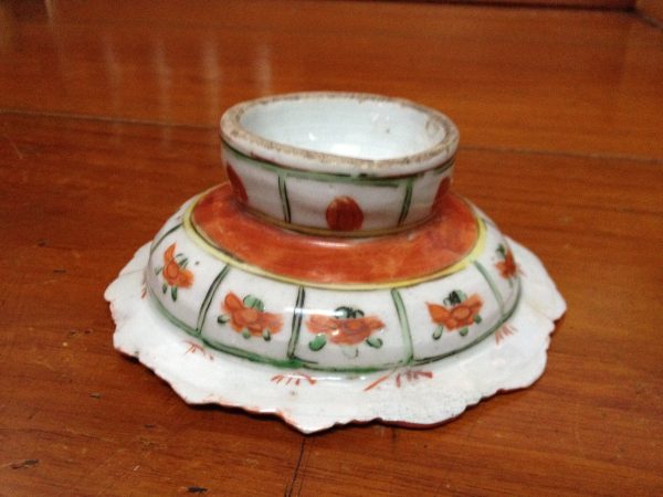 จานเชิงลายต่ออยุธยาใบใหญ่ มีซ่อมปลายปากเล็กน้อย หนึ่งรอย