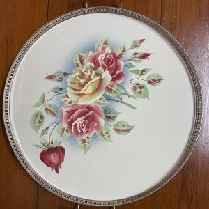 ถาดกระเบื้องโบราณ ขนาด 18 นิ้ว ลายดอกกุหลาบบานแดง 1 เหลือง 1 นอกนั้นดอกอื่นๆ เหลือง 7 ดอก