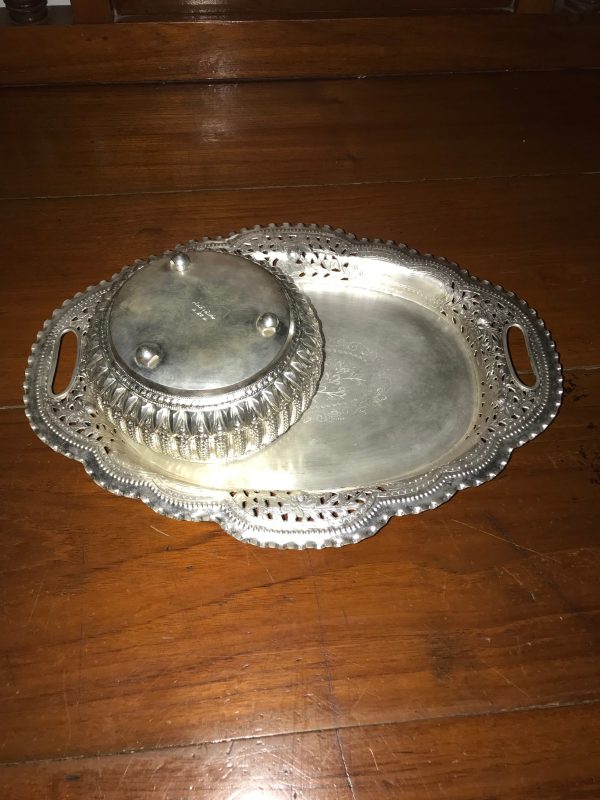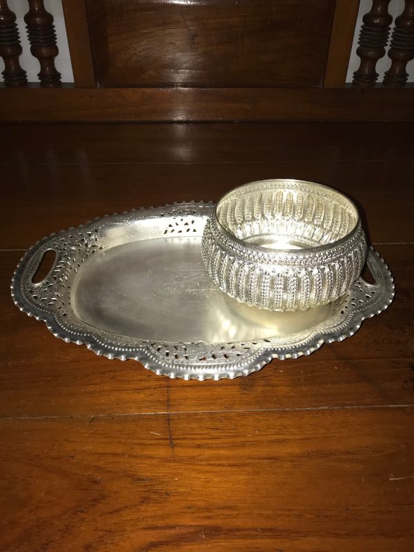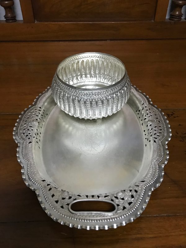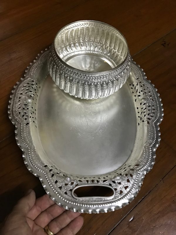 ถาดฉลุลายรูปไข่พร้อมขัน เนื้อเงิน ครบชุด
