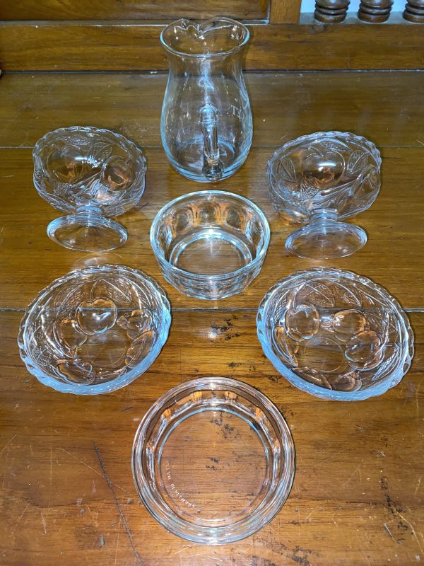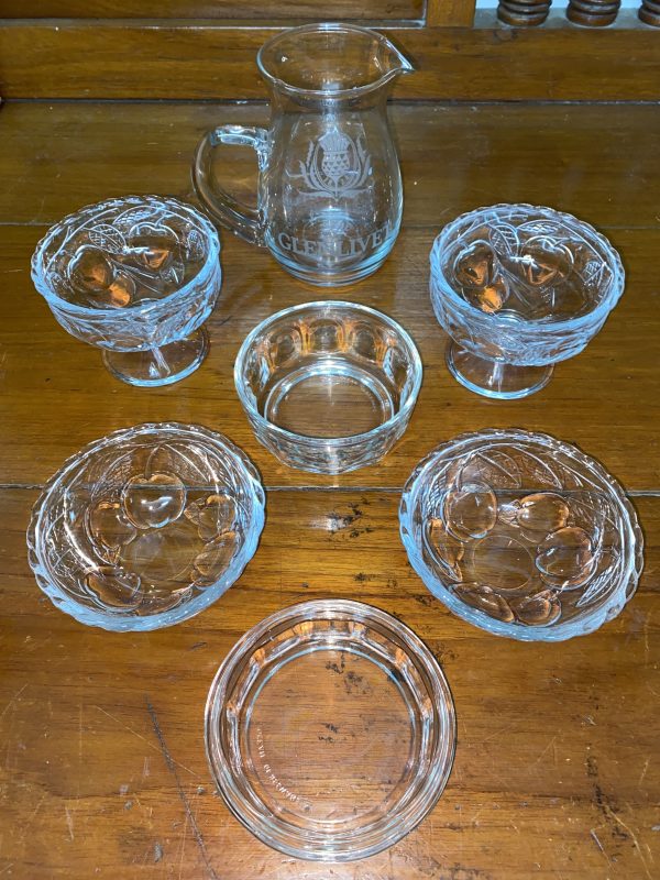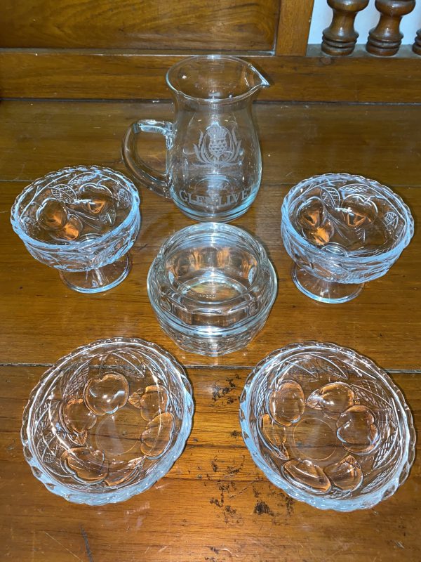 ถ้วยแก้ใสไว้ใส่ไอศครีมพร้อมฝารวม 3 ใบ และเหยือกแก้นำ้ใสโบราณ1ใบ เก็บได้สมบูรณ์