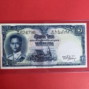 ธนบัตรแบบ 9 1บาท รุ่นที่ 4 ประกาศใช้ 10 มกราคม 2498 ลายเซ็น ภ บริภัณฑ์ยุทธกิจ - ส. วนิจฉัยกุล พิมพ์ที่ บริษัท โทมัส เดอ ลา