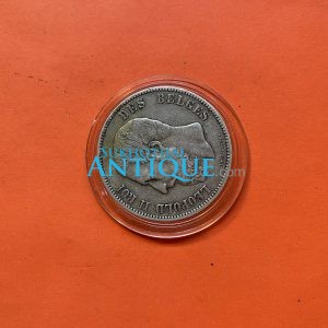เหรียญเก่าเนื้อเงินประเทศเบลเยี่ยมสมัยพระเจ้า LEOPOLD II ROI ปี ค.ศ.1873 มูลค่า 5 France ตรงสมัย ร.5 พ.ศ.2416