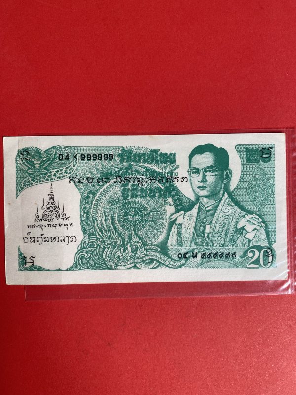 ธนบัตรขวัญถุงราคา 20 บาท พระพักต์ในหลวง หมวด 04 K 04 น 999999 พร้อมยันต์มหาลาภเสริมดวง แก้ชง โชคลาภ เรียกทรัพย์