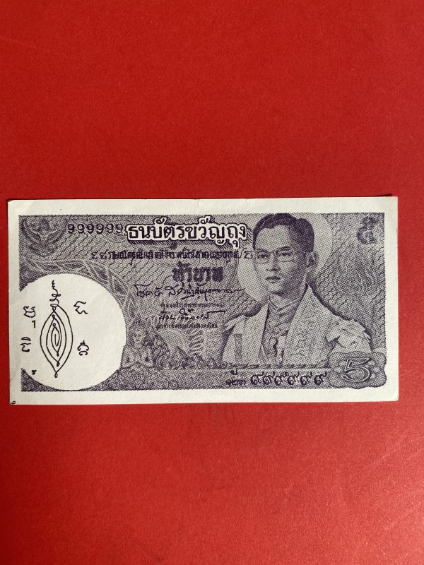 ธนบัตรขวัญถุงราคา 5 บาท พระพักต์ในหลวง หมวด ป 123 999999