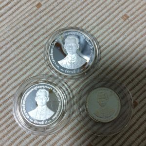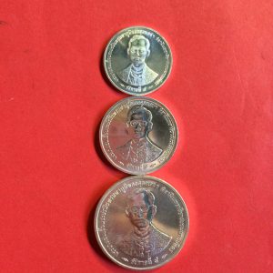 เหรียญฉลองสิริราชสมบัติครบ 50 ปี กาญจนาภิเษก 9 มิถุนายน 2539 เนื้อเงินแบบธรรมดาครบชุด 3 เหรียญ
