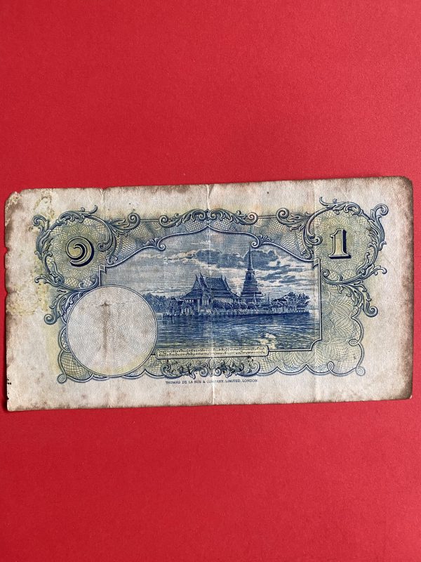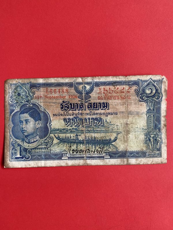 ธนบัตรแบบ 3 1บาท รุ่นที่ 2 รัชกาลที่ 8 ประกาศใช้ 28 กันยายน 2479 ลายเซ็น พระยาไชยศสมบัตร พิมพ์ที่ บริษัท โทมัส เดอ ลา รู