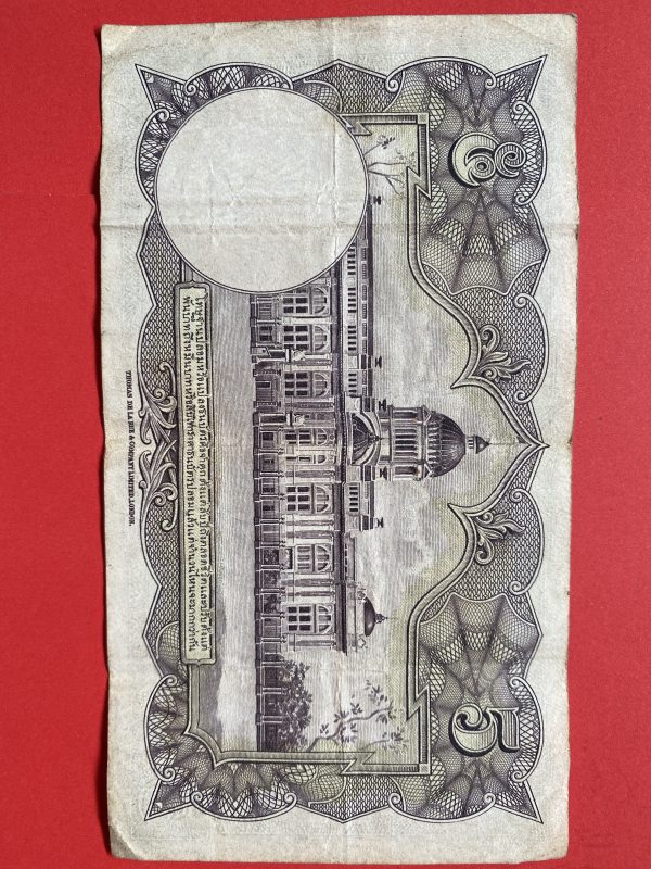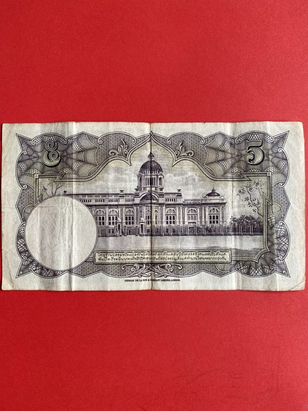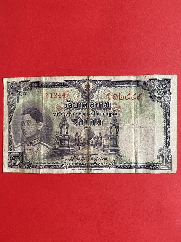 ธนบัตรแบบ 4 5 บาท รุ่นที่ 1 ประกาศใช้ 14 เมษายน 2482 ลายเซ็น หลวงประดิษฐ์มนูธรรม บ. โทมัส เดอ ลา รู แอนด์ คัมปานี หมึกสีแดง