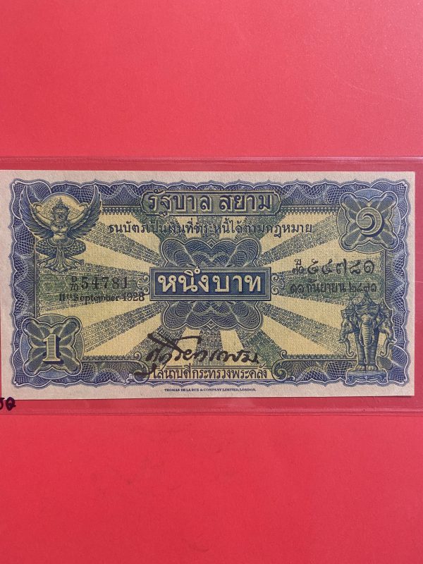 ธนบัตร แบบ 2 ไถนา1บ. รุ่นที่ 2 ร.6 ประกาศใช้ 19 ก.พ. 2471 ลายเซ็น ศุภโยคเกษม พิมพ์ที่ บริษัท โทมัส เดอ ลา รู แอนด์ คัมปานี