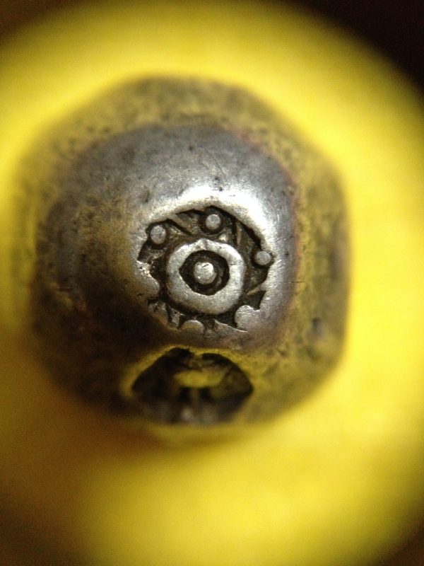 พดด้วงรัตนโกสินทร์เม็ดบาทสมัย ร. 4 พ.ศ.2394-2411 ( ตรามงกุฎ-กรงจักร ) เม็ดนี้พิเศษมี 3 ตรา (เม็ดที่ 2)