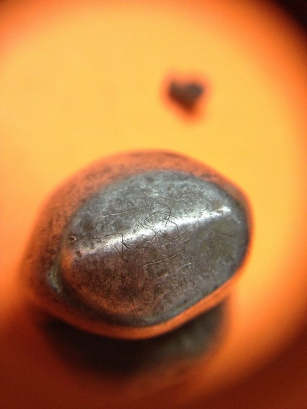 พดด้วงรัตนโกสินทร์เม็ดบาทสมัย ร. 4 พ.ศ.2394-2411 ( ตรามงกุฎ-กรงจักร ) เม็ดนี้มี ลงจาร (เม็ดที่ 3)