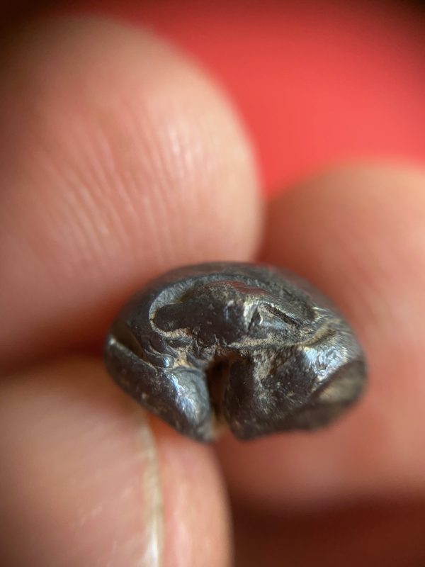 พดด้วงสมัยสุโขทัยเม็ดสองสลึงหายากมาก ตรา ช้างการ์ตูน – หอยสังข์ รอยบากขากว้าง สภาพคมชัดสวยงาม