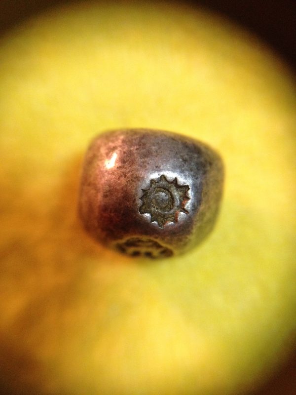 พดด้วงรัตนโกสินทร์เม็ดบาทสมัย ร. 4 พ.ศ.2394-2411 ( ตรามงกุฎ-กรงจักร ) เม็ดนี้พิเศษมี 3 ตรา (เม็ดที่ 2)