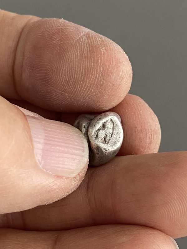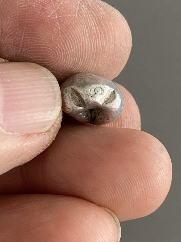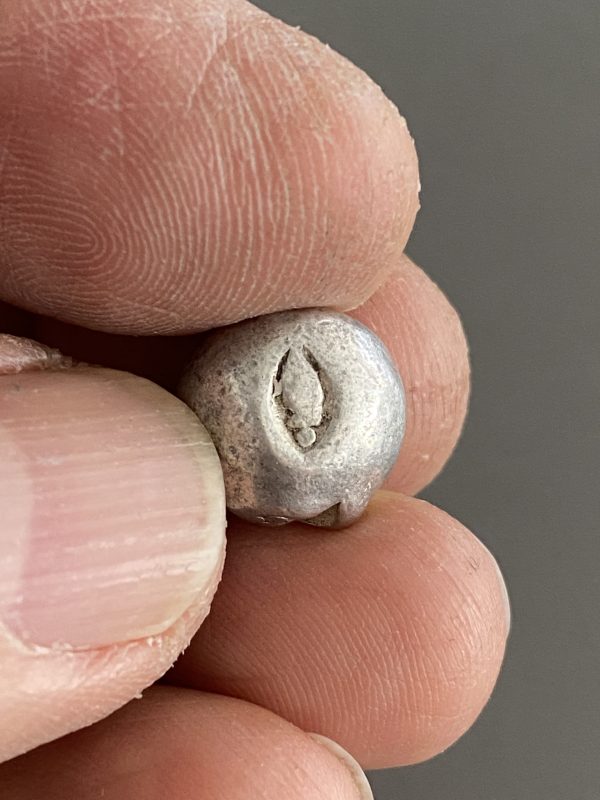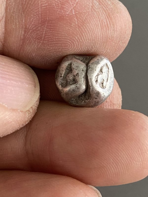 พดด้วงเนื้อเงินสองสลึงสมัยสุโขทัย 4 ตรา หอย-สิงห์ -ดอกไม้ นำ้หนัก กรัม ผิวเดิมตราคมชัดสวยงามมาก