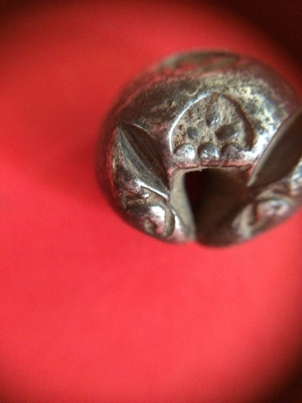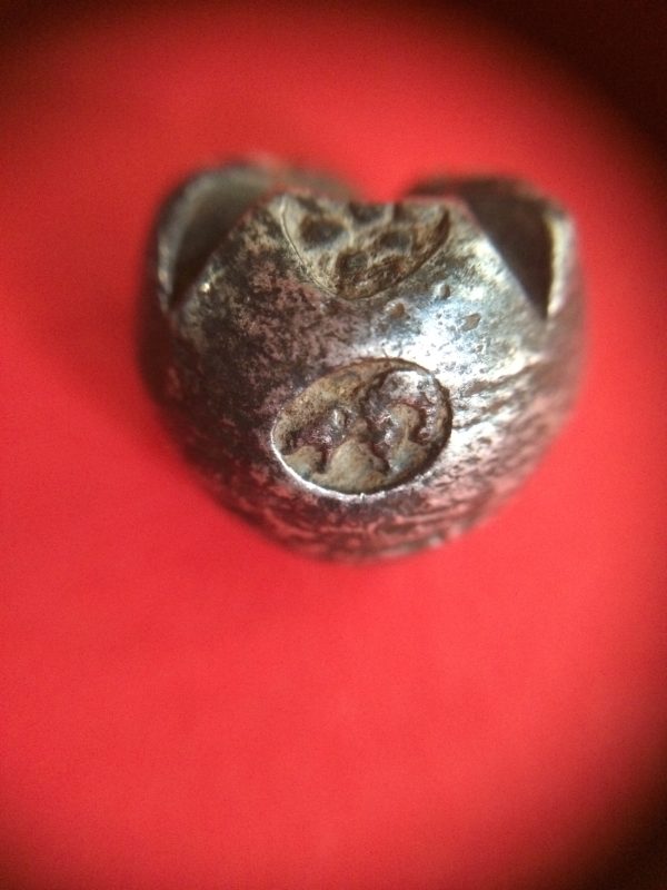 พดด้วงเนื้อเงินเม็ดหนึ่งบาทหนัก 14.19 กรัม ตอก4 ตรา น่าจะเป็นสมัยสุโขทัยหรืออยุธยา ตอกตราได้สวยงามคมชัดมากๆ