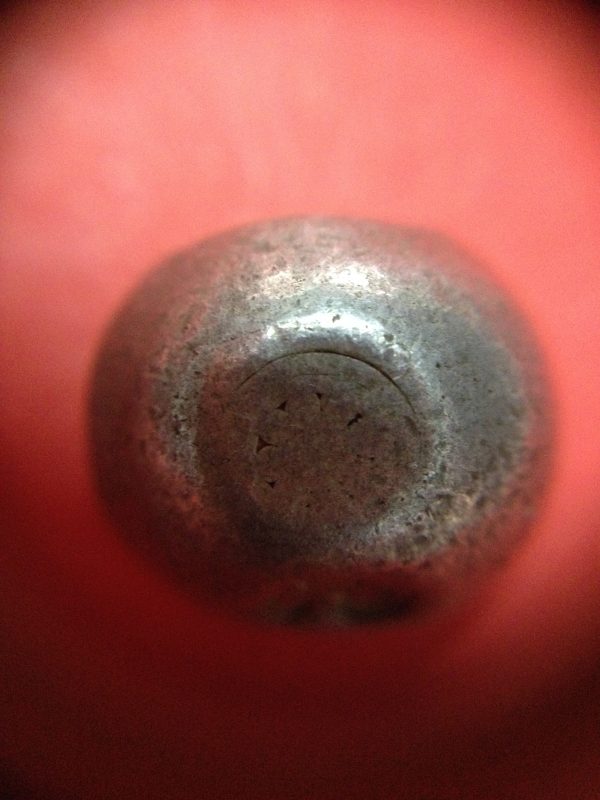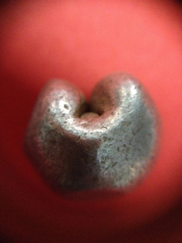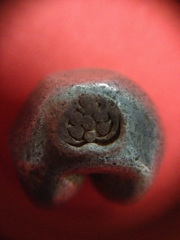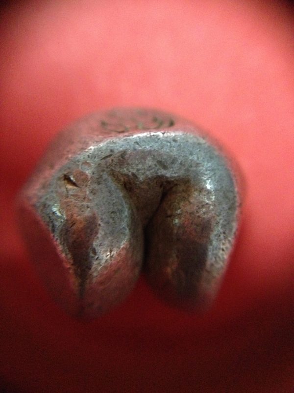 พดด้วงเม็ด 1 บาทสมัยพระนารายณ์ปี พ.ศ. 2199-2231 ตรา บัว หรือ พุ่มข้าวบิณฑ์ใต้จุดบนมีเส้นสองแฉก สวยคมชัด (เม็ดที่ 2)