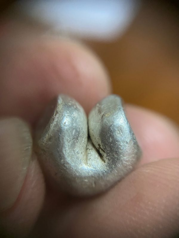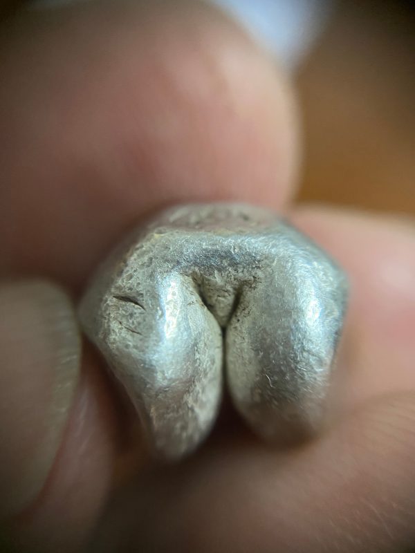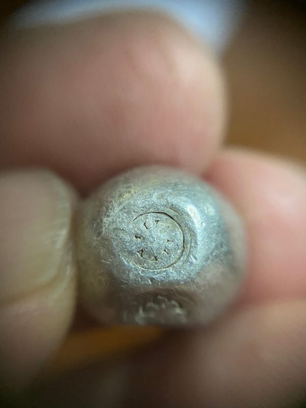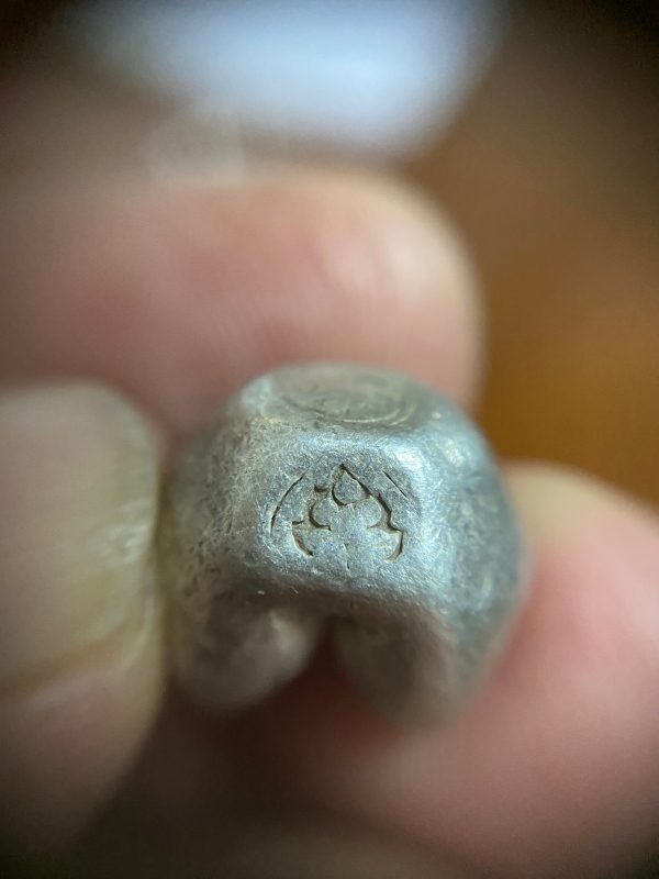 พดด้วงเม็ด 1 บาทสมัยพระเจ้าปราสาททองปี พ.ศ. 2173-2198 ตรา พุ่มข้าวบิณฑ์จอมปราสาท เป็นรูป 7 จุดอยู่ภายในกรอบ สวยคมชัดมากๆ (เม็ดที่ 2)