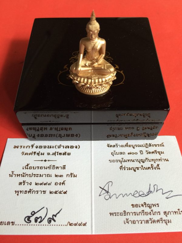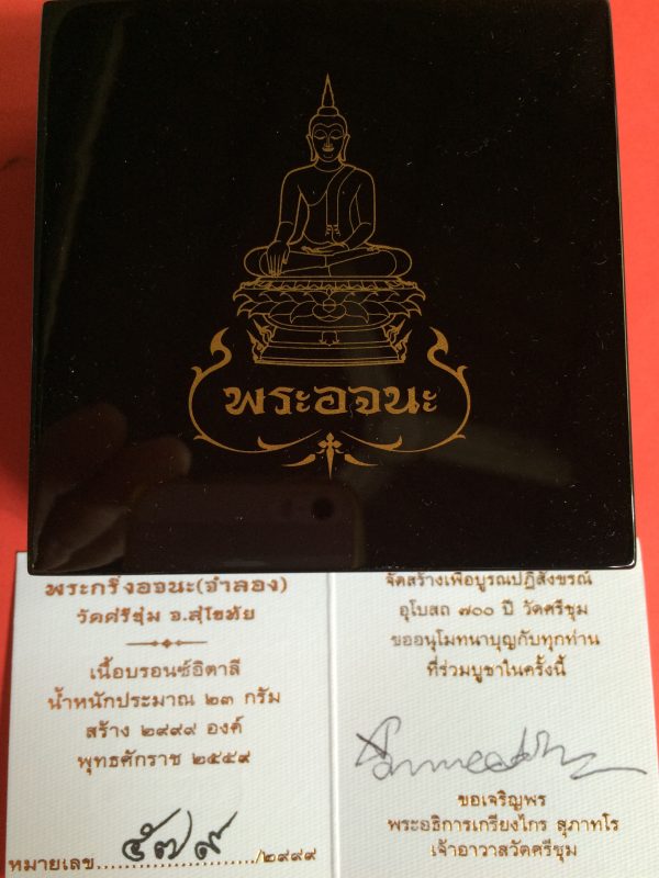 พระกริ่ง " อจนะจำลอง " เนื้อทองอิตาลี ออกที่ วัดศรีชุม จ.สุโขทัย พิธีมหาพุทธาภิเษก 1 พฤษภาคม 2559 คอกโค๊ต 961