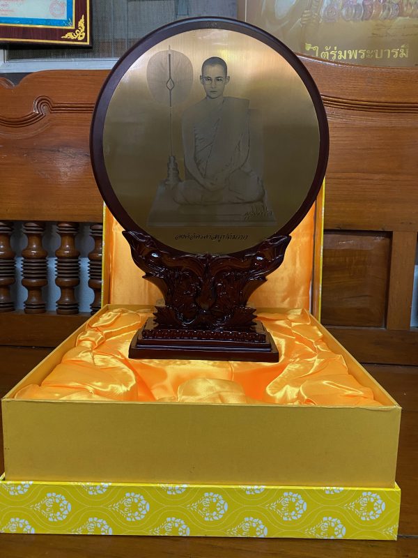 จัดสร้างโดยศูนย์ส่งเสริมพุทธศาสนาแห่งประเทศไทยขนาดกว้าง28ซม.สู.39ซม.ทำจากแผ่นโลหะแปะที่เนื้อไม้สวยงามมากๆ