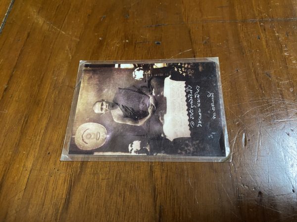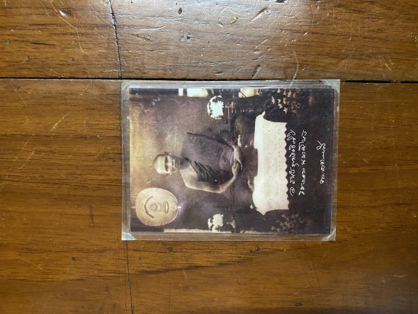 ภาพถ่ายเก่าพระอาจารย์ ลี ใบเล็กออกจากวัด ด้านหลังปั้มตรากรงจักรของวัดในหนองเสือ จ.ปทุมธานี