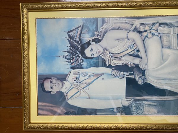 รุปถ่ายในหลวงร.9คู่กับพระราชินีจากภาพวาดขนาด 62 ซม.X 46 ซม.เลี่ยมกรอบสีทองสวยงาม