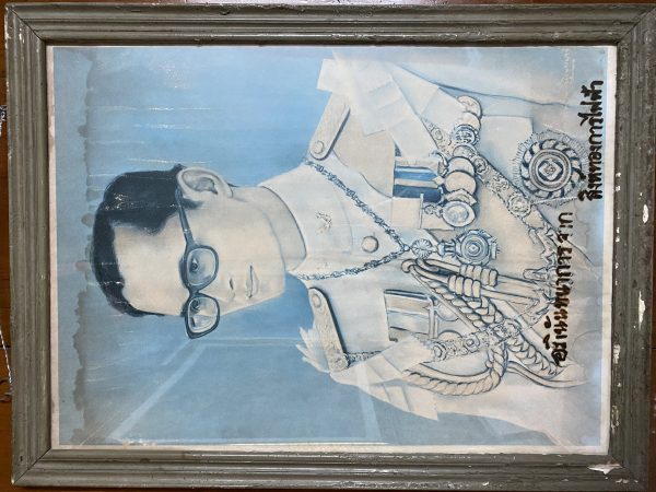 รูปถ่ายเก่าในหลวงร.9 จากภาพวาดสีอยู่ในกรอบไม้เดิมใหญ๋มาก อภืนันทนาการจากร้าน สิงห์ทองการไฟฟ้า