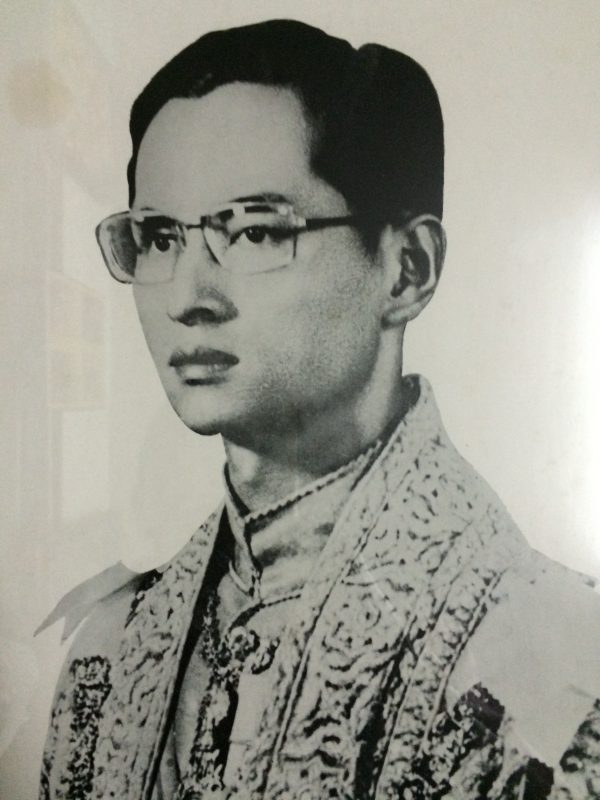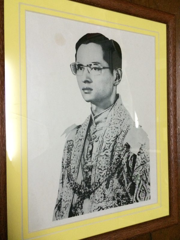 รูปพิมพ์เก่าสมเด็จพระเจ้าอยู่หัวภูมิพลอดุลยเดช ขาวดำในกระดาษสำนักพุทธบูชาอย่างหนา
