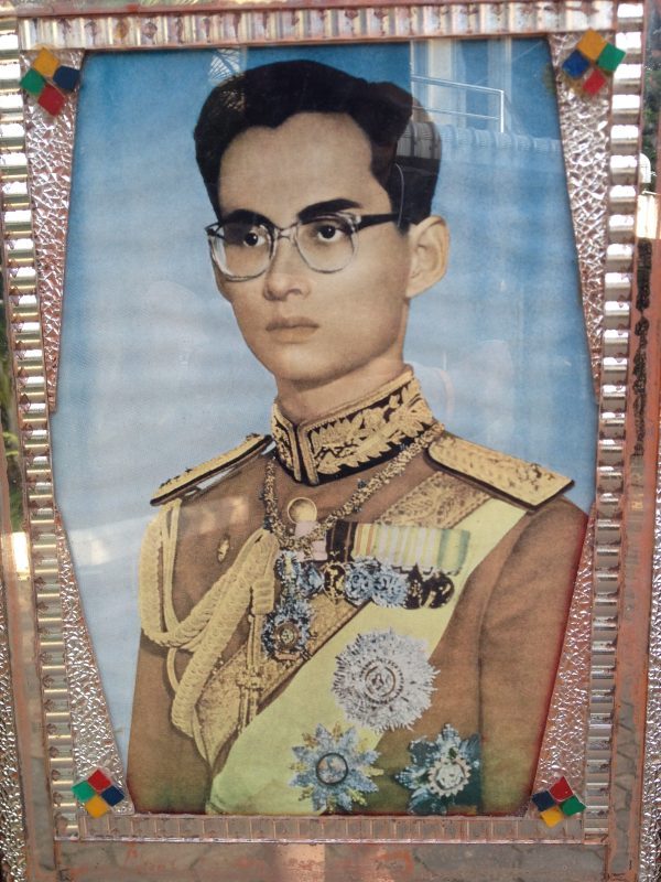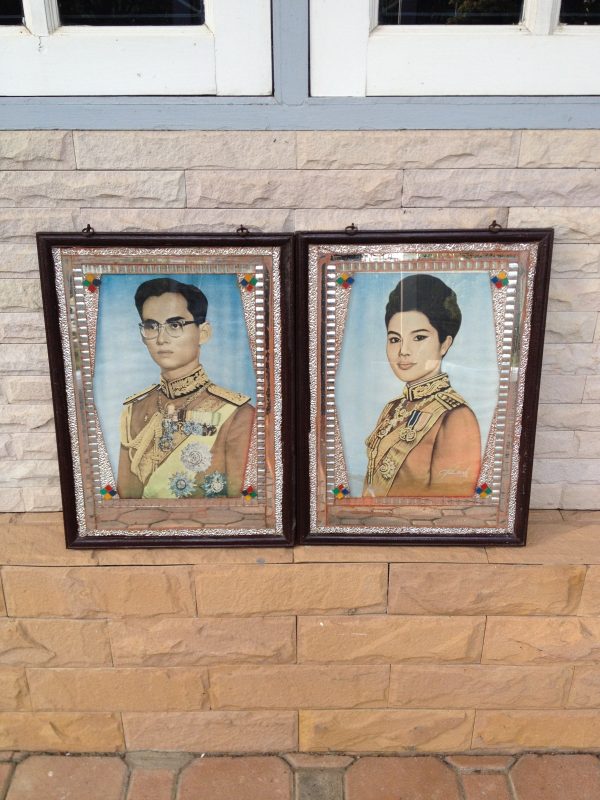 รูปเก่าในหลวงทรงชุดจอมทัพสีแดงอยู่ในกรอบโบราณเดิมขนาด 14″x19″ สมบูรณ์สวยงามมากๆ(เฉพาะในหลวง)