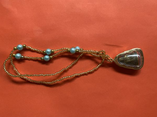 หลวงพ่อเงินหล่อโบราณออกวัดท้ายนำ้ เลี่ยมพลาสติกกันนำ้กรอบทองไมค่อน รวมสร้อยคอพร้อมใช้