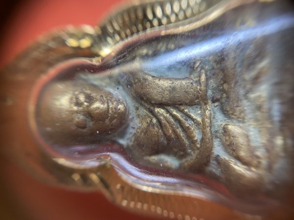 ล็อกเก็ตรูปถ่ายเก่าหลวงพ่อเงินวัด บางคลาน หลังเป็นพระพุทธยืนบนดอกบัว