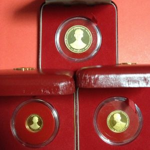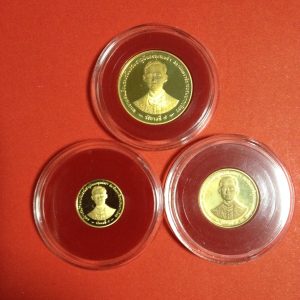 เหรียญกษาปณ์ที่ระลึก พระราชพิธีกาญจนาภิเษก ปี 2539 ชุด3เหรียญ เนื้อทองคำขัดเงา พร้อมกล่องกษาปณ์ และใบรับรองสมาคม
