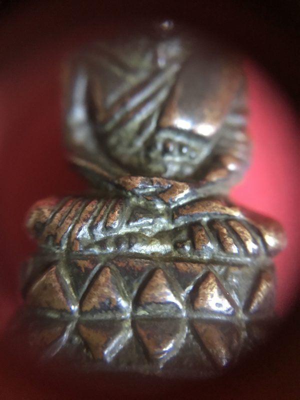 หล่อหลวงปุู่่ทวดนั่งบนกลีบบัวฐานสูงเนื้อทองแดงผิวเก่าสวยงาม