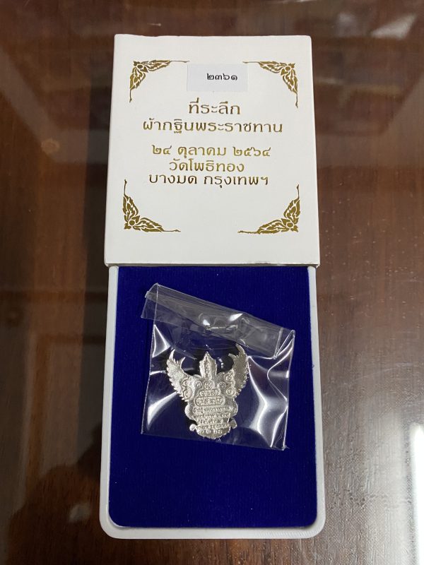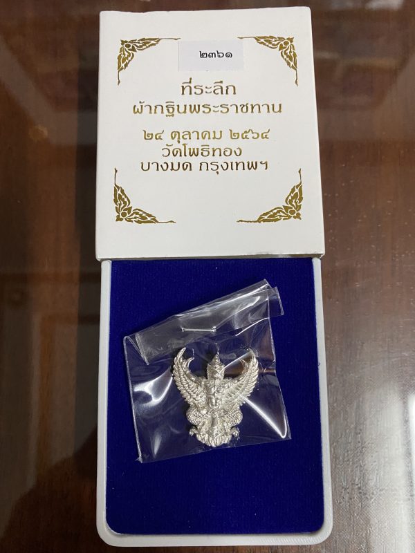 องค์พญาครุฑ ที่ระลึกกฐินพระราชทาน ปี 2564 หลวงพ่อวราห์ วัดโพธิ์ บางมด เนื้อเงินตอกโค๊ตหมายเลขกำกับสวยงามพร้อมกล่อง