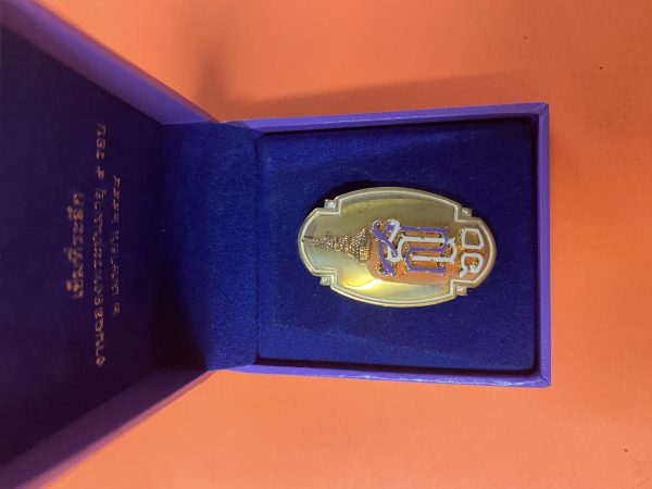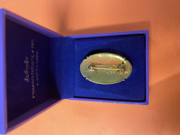 เข็มที่ระลึก รุ่นฉลองพระชนมายุ 5 รอบ 2 เมษายน 2558 อยู่ในกล่องกำมะหยี่พร้อมกล่องเดิมสีม่วงมีตราสัญญาลักษณ์ สธ.