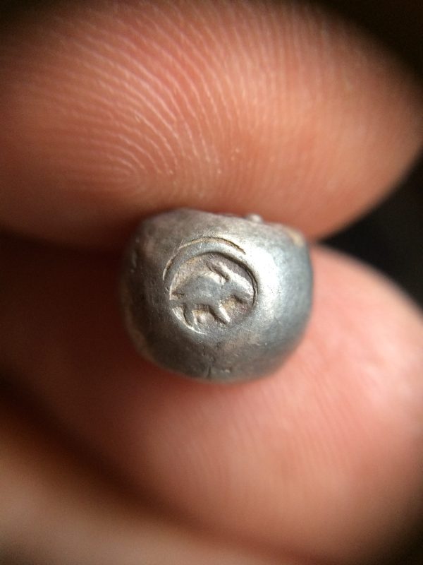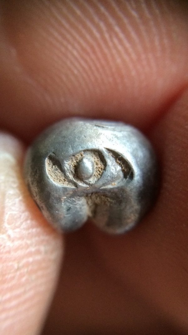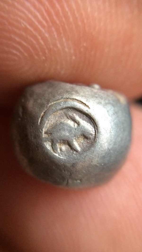 เงินพดด้วงหนึ่งสลึงสมัยสุโขทัยตรา กระต่าย-หอยสังข์ หนัก3.49 กรัม ตราสวยงามคมชัดมากๆหายากสภาพนี้