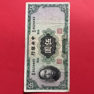 ธนบัตรเก่าประเทศจีน ค.ศ. 1936 มูลค่า 5 YUAN อายุประมาณ 80 กว่าปี สภาพใช้