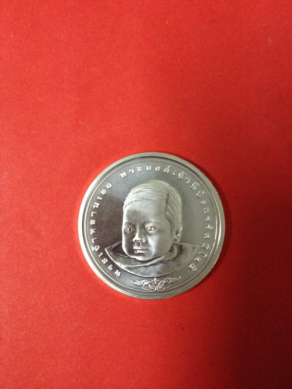 เหรียญกษาปณ์ที่ระลึกสมโภชเดือนและขึ้นพระอู่ พระองค์เจ้าทีปังกรรัศมีโชติ เนื้อเงินสาดทราย หน้าเหรียญ 600 บ. สวยงามคมชัดมากๆ (ผลิตเพียง 5,000 เหรียญ)