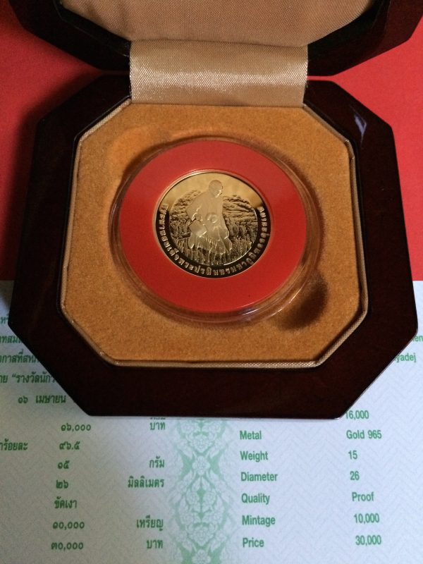 เหรียญกษาปณ์ที่ระลึกเฉลิมพระเกียรติพระบาทสมเด็จพระปรมินทรมหาภูมิพลทองขัดเงา15g”รางวัลนักวิทยาศาสตร์ดินเพื่อมนุษยธรรม