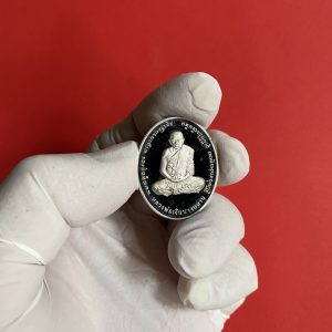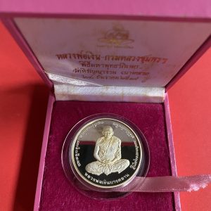 เหรียญหลวงพ่อเงินบางคลาน หลังกรมหลวงชุมพรฯ เนื้อเงินบริสุทธิ์ขัดเงาออกวันที่ 28 ธันวาคม ปี 2537 กล่องกำมะหยี่สีชมพูเดิม